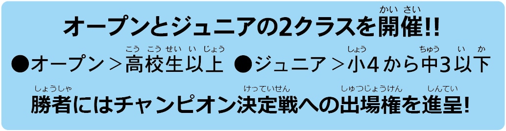 各クラスの勝者には、ステーションレーサーのNo.1決定戦「ミニ四駆ステーション・チャンピオン決定戦」の出場権を進呈! ※詳しい開催スケジュールはミニ四駆ステーションのホームページ・店頭・お電話で直接お問い合わせ下さい。