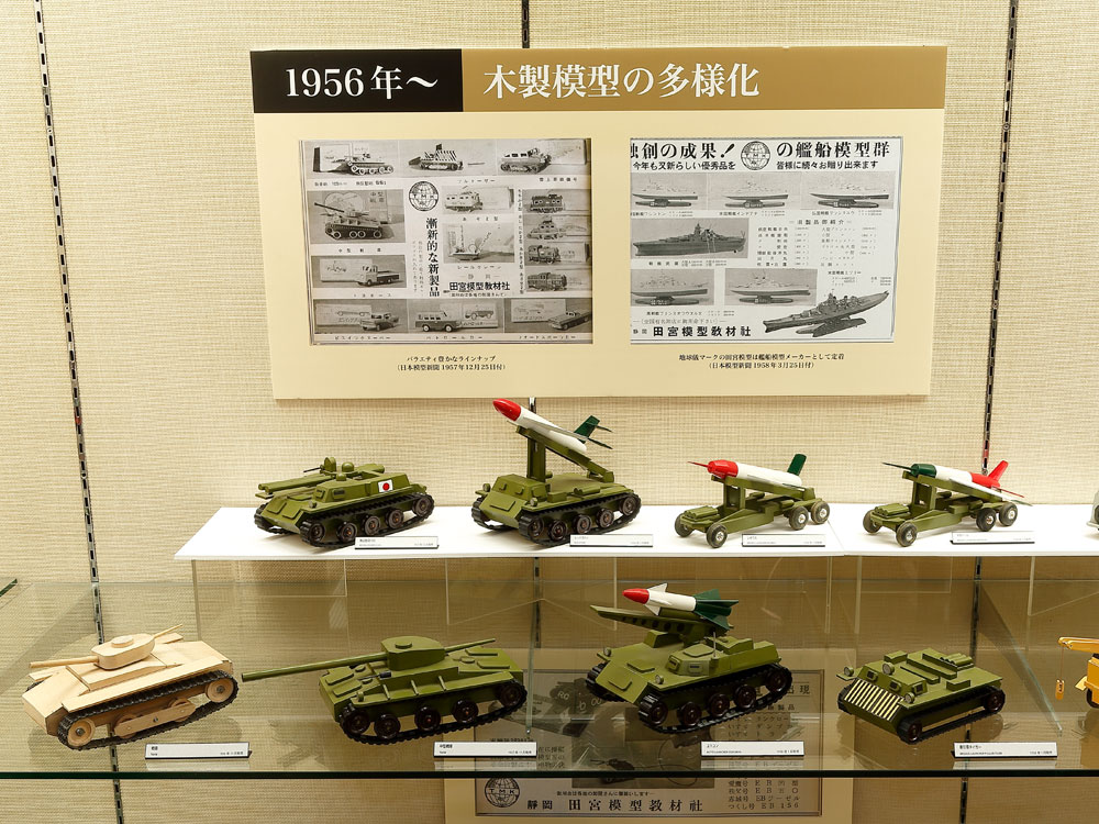 Come to the Hobby History Archives and take a trip through our history which stretches back to when Tamiya was founded in 1946. The Archives were given a makeover in summer 2025 and now feature a dedicated section showing how we progressed from wooden to plastic models, illustrated with the original models and even recreations made using design drawings from eras gone by. Don't forget to have a look at our very first plastic model, the Yamato in 1/800 scale, our first motorized plastic model of the 1/35 Panther tank from 1962, and of course the extensive displays of car and motorbike static models, not to mention our radio-controlled models, which have enjoyed great popularity since we first started selling them in 1976, and our smash hit Mini 4WD series.