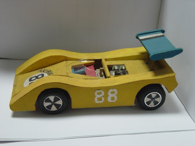 作者: サミ〜・リー さん (小5・神奈川)※昭和52年8月当時サミ〜・リー さんの作品は「サマーレーシング!」 なんとこちらの作品、今からさかのぼること36年前、サミ〜さんが「小学五年生のとき」に作った作品で、 『実家の居間のガラス棚の後ろのほうでホコリをかぶっていたもの』なのだそうです! サミ〜さんによると、当時の模型少年の夏休み課題といえばタミヤの工作キットを使ったレーシングカーやタンクが定番だったそうですが、バルサ材と紙を使って作られた迫力満点のフォルムはいま見ても素晴らしい出来ばえ。当時の小学生の工作力の高さをうかがわせてくれる作品です!