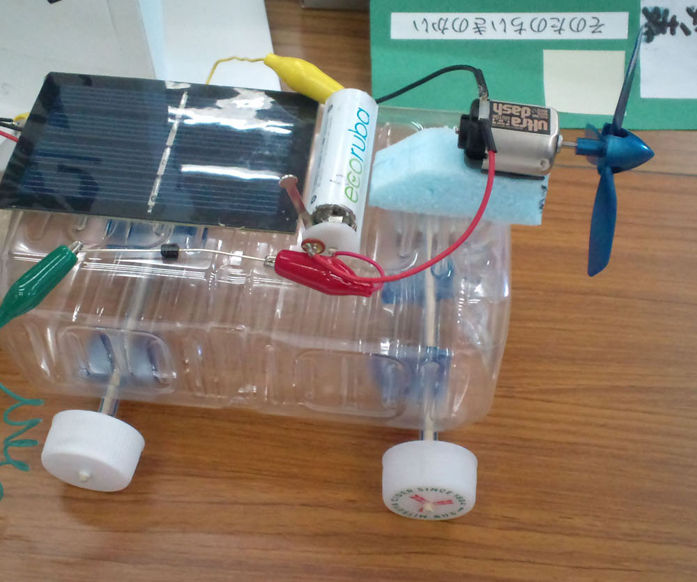 作者: TAKUMA さん (小6・千葉)TAKUMAさんの作品は「力を合わせてレスキューカー」! 手回し式の発電機を2個用意して、右のモーターは右の発電機、左のモーターは左の発電機で制御するというシステム。つまり、操作する2人が息を合わせて操作しないと、まっすぐ走らせることもコーナリングすることもできないというわけです。まさに「力を合わせて」の名にふさわしい作品! レスキューカーの専用コースも手が込んでいて、わいわい楽しみながらレスキュー遊びが楽しめそう。これはやってみたくなりますね!