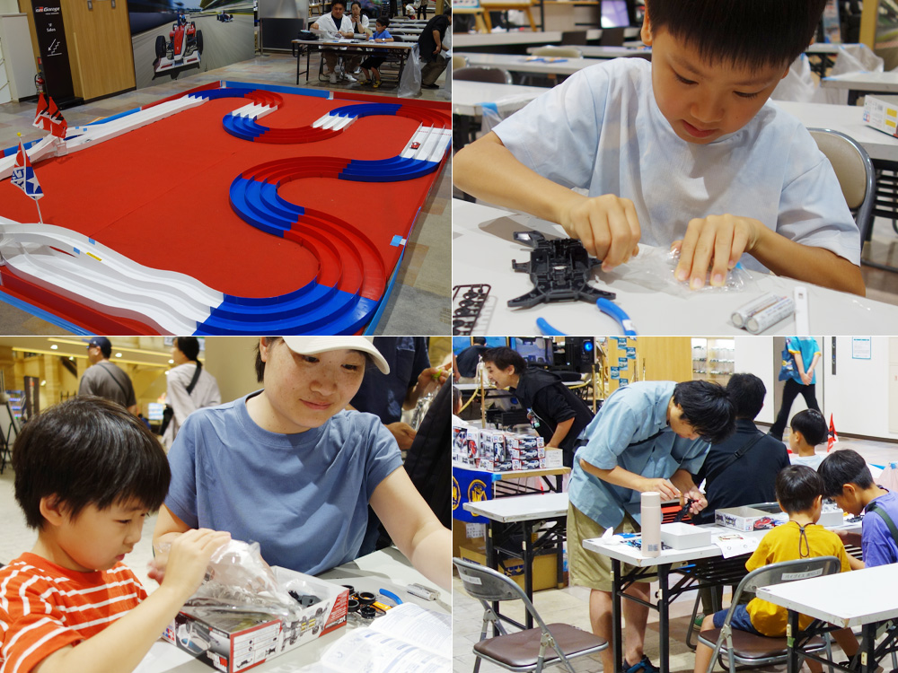 トレッサ横浜・北棟2階「GR Garage」では、毎月恒例のe-Motorsports体験(無料)に加え、ミニ四駆組み立て教室(有料)を同時開催します。ミニ四駆の組み立てが初めてのお子さまでも、スタッフがていねいにサポートいたしますので、安心してご参加いただけます。完成したミニ四駆は、大きな特設コースで実際に走らせられるのでワクワク間違いなし!