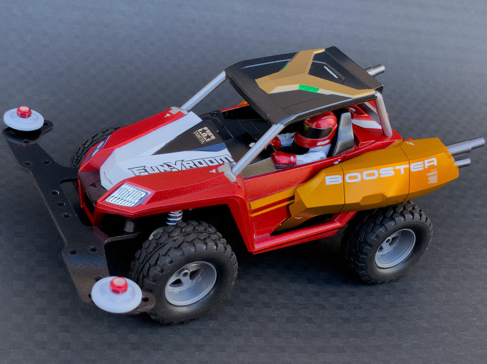 「2024年の6月に制作を始めましたが、空いている時間にゆっくりと作業を進めていたので最終的には1年4カ月程の長期間となりました。制作中に訪ねた"タミヤホビーワールド2024"の会場に偶然、今回の作品と同じビクトリーマグナムがベースのとても格好良い改造マシンが展示されていたのを見て、制作のモチベーションアップに繋がりました。」