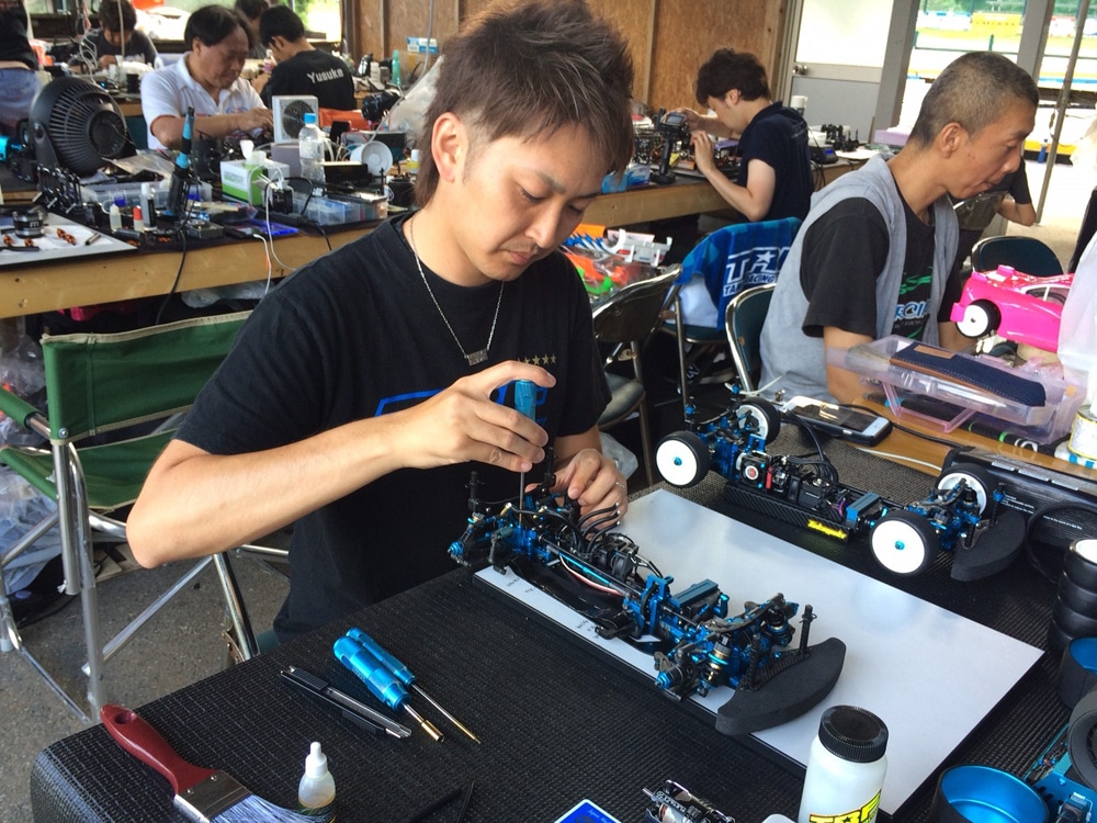 JMRCAが主催する1/10電動ツーリングカー全日本選手権が千葉県市原市にある「ケイチューンレーシングスピードウェイ」で開催されました。クラスはスーパーエキスパートクラス、オープンクラスの2クラスで全国より65名の選手が集いました。タミヤからはTRF河野が先に発表された「TB EVO.7」の実践テストを兼ねてオープンクラスに参加。TRF鈴木もタミヤ車両で参加の選手をサポートしました。レース前のテスト走行ではEVO.7の特徴であるモーターポジションによる特性を比較するなど順調に最終調整を行いました。EVO.7では初のレース参戦となりましたが、予選10位でAメイン進出。最後尾グリッドからのスタートながら一時は4位争いを行うなど、ベルト駆動全盛の中でシャフト駆動の可能性を確認する事が出来た大会となりました。3回の決勝の総合成績は8位でしたが、今大会での経験を生かし発売に向け更なる進化をさせていきたいと思います。また今大会では2016年タミヤワールドチャンピオンの篠沢秋満選手が、TRF419Xを駆りオープンクラスで見事準優勝を獲得しました。