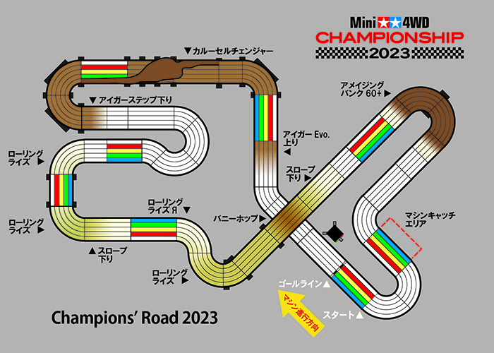 ●ミニ四駆チャンピオンシップ2023公式サーキットは『Champions' Road 2023』。