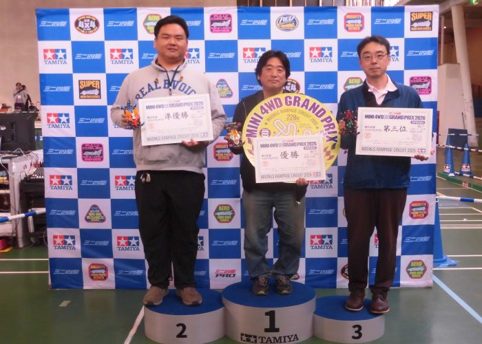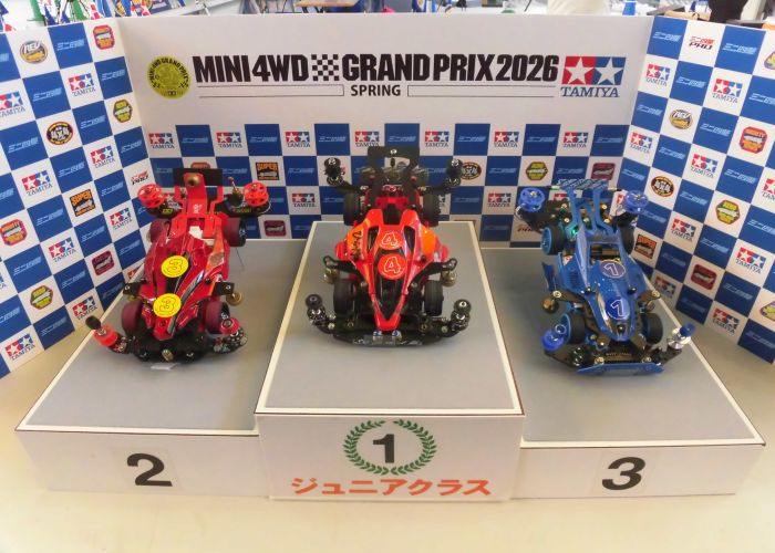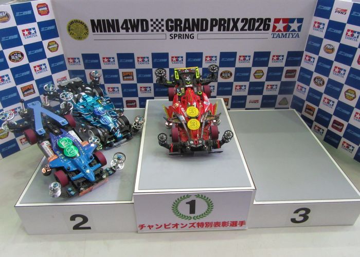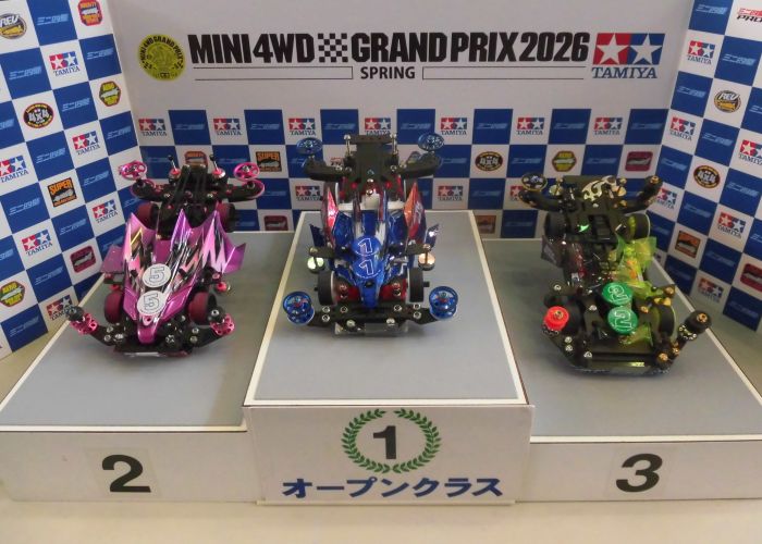 ■2026年のミニ四駆グランプリ、スプリングシリーズも第4戦となり」折り返しに突入! 掛川大会が「つま恋リゾート 彩の郷」にて28日(土)は終日練習日、29日(日)が本戦として開催されました。トライアルクラス・ファミリークラス・ジュニアクラス・オープンクラスとチャンピオンズおよび特別表彰選手のレースを行いました。場内の桜が日に日に満開に近づく中、両日合わせて合計900名が参加。連続する僅差の好勝負に会場も湧きました。
