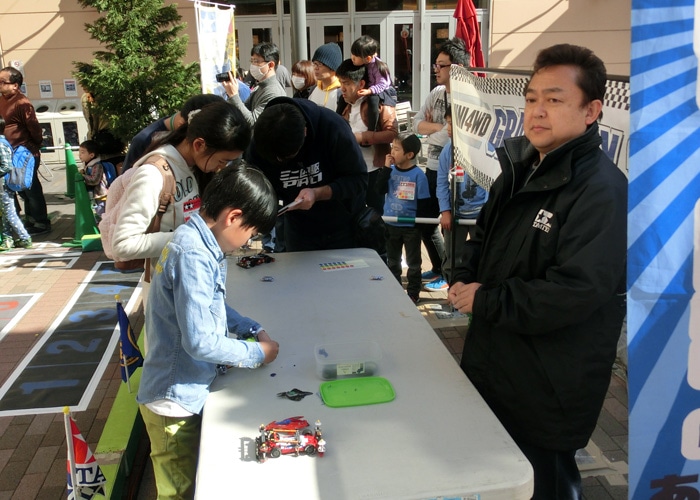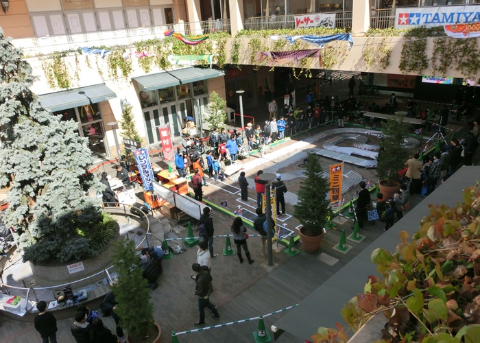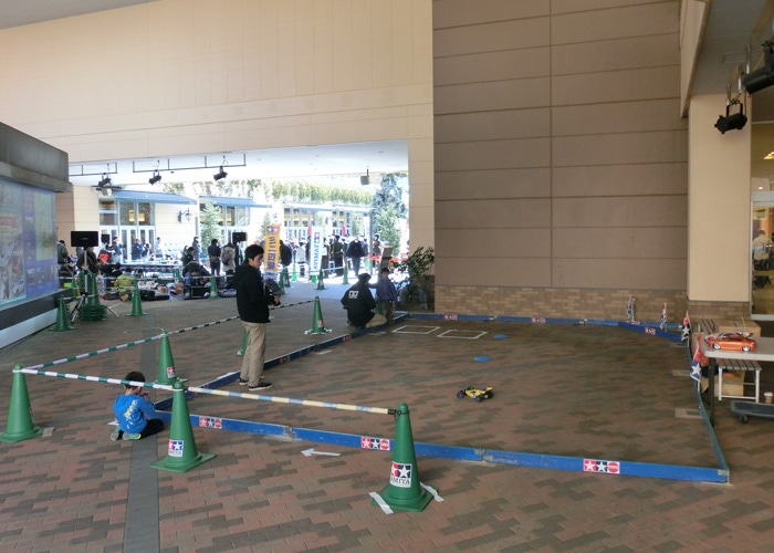 恒例のジュニアカップの季節がやってきました!会場はおなじみ、タミヤプラモデルファクトリーのすぐ横・トレッサ横浜 南棟イベント広場。晴天の下、早くも広場にあげられたこいのぼりに見守られながらの開催となりました。参加選手はジュニアクラス・ファミリークラス合わせて120名。会場脇にはRCカーの体験コーナーも用意され、ミニ四駆とは異なり自分で操縦するマシンに挑戦することもできました。