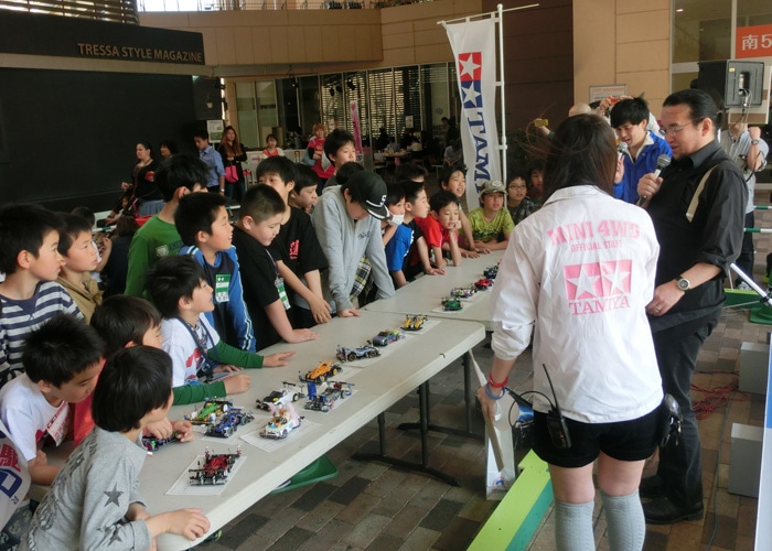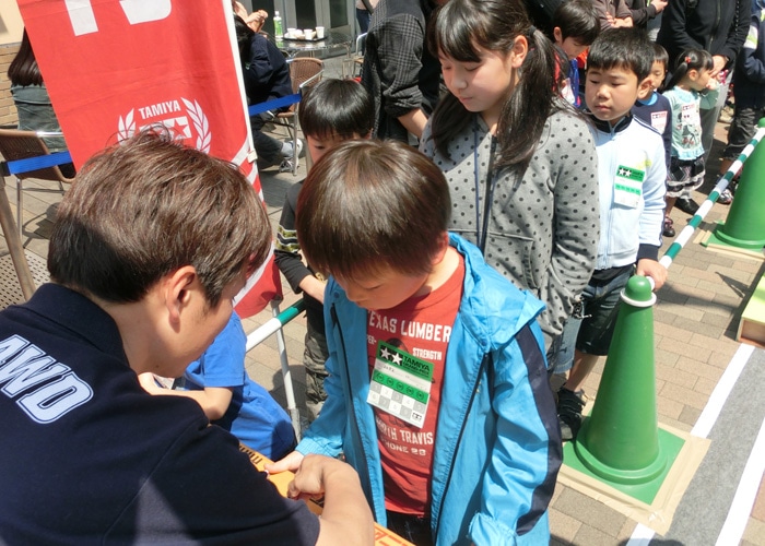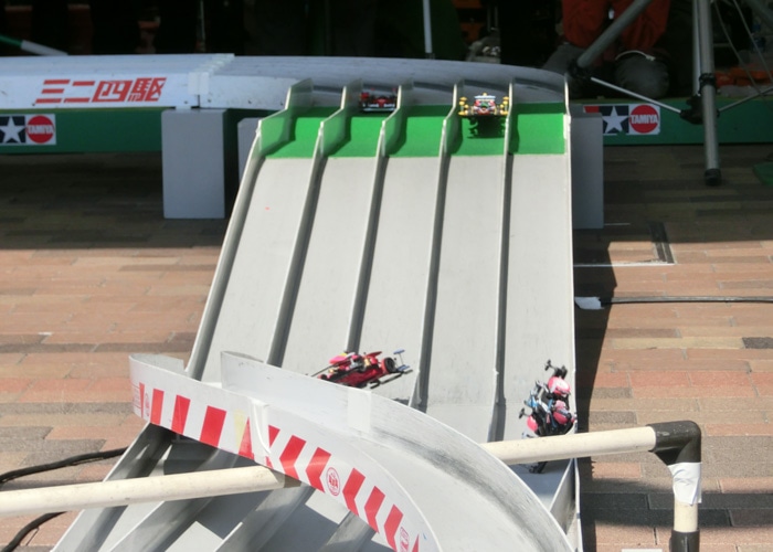 ■会場 : トレッサ横浜 南棟イベント広場 (横浜市港北区) ジュニアレーサーの皆さん、新年度の生活には慣れたでしょうか?季節は早くもゴールデンウィーク、トレッサ横浜杯ではジュニアカップを開催!サーキットは現在開催中の「ミニ四駆グランプリ SPRING大会」と同じ、「ステップサーキット2014」。アップダウンが激しく大人のレーサーでも完走が難しい難関サーキットです。参加者はジュニアクラス・ファミリークラス合わせて171名。さて、勝負の行方は…? |