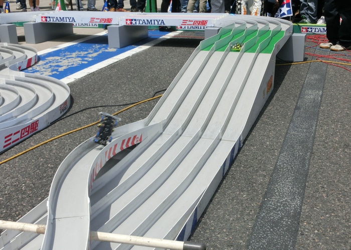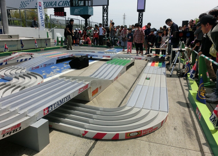 ■会場 : 鈴鹿サーキット国際レーシングコース(三重県鈴鹿市) 5月らしいさわやかな空の下、ゴールデンウィークを締めくくる一大イベント「コロコロHOBBYフェスタ in SUZUKA with ぷっちぐみ」内にて「ミニ四駆グランプリ2014 SPRING 鈴鹿大会」が開催となりました!会場となった鈴鹿サーキットは実際の自動車やオートバイのレースで名高いモータースポーツの聖地。「本物」の雰囲気を味わいながらのレースは格別です。サーキットはSPRING大会統一の「ステップサーキット」ですが、少し傾斜のあるピットレーン上に設置されており、これまでとはその性質を異にしています。集まった合計で968名の選手の走りにはどう影響したのでしょうか? |