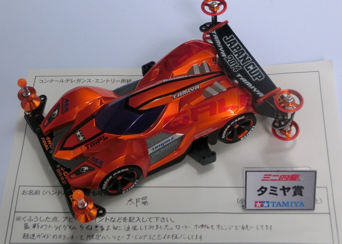 ・優勝車スペック ボディ:サンダーショットMk.II シャーシ:VS モーター:ハイパーダッシュ3 ギヤ比: 3.5:1 タイヤ:大径 |