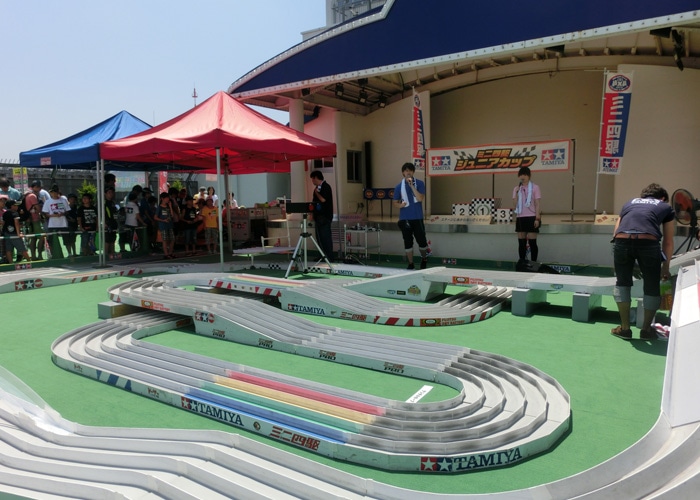 ジュニア選手の皆さん、夏休みです!ジュニアカップの季節です!今回の会場は池袋の東武百貨店。百貨店の屋上というミニ四駆公式大会としては由緒正しいロケーションでの開催に、胸が熱くなるお父さんもいらっしゃることでしょう。今回は同じく東武百貨店8F催事場「タミヤモデラーズギャラリー」でのダイハツ コペン実車展示と連動し、年齢無制限の「コペン ワンメイクレース」も開催しました。