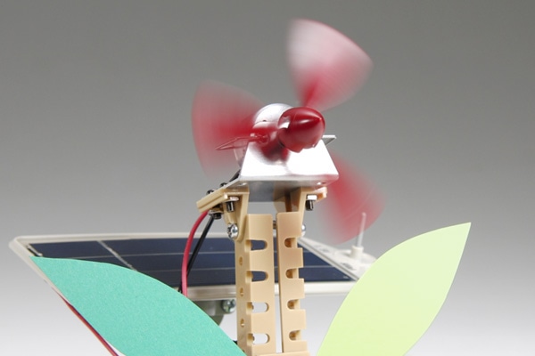 「再生可能エネルギー」として注目を集めている太陽光発電。住宅の屋根に乗っているソーラーパネルも多く見るようになってきました。ここではそんなソーラーパネルを使った、工作の応用例を紹介します。タミヤのソーラーパネルは太陽の光が強い時にパワーを発揮する1.5V-500mAタイプと、晴れた時はもちろん、薄曇りなど太陽の光が比較的弱くても電気を起こすことができる0.5V-1500mAタイプの2種類が揃っています。どちらもコードが配線済みで、パネルの角度が変えられるボールジョイント採用の組み立て式スタンドがついていて、取り付ける時に便利。多くの工作に使えて、遊びながら学べます。