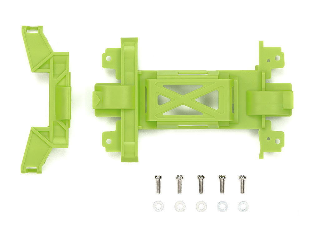 Used in place of kit standard gear cover parts, this gear cover is securely affixed with 4 screws, giving greater rigidity than kit standard parts that translates into less flex at high speed. The yellow-green color will add a fresh vibe to your model, and goes great with the chassis set sold as Item 95702.