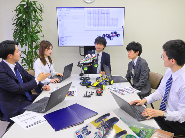 基本的な業務は、問屋様へのルートセールスが中心です。ラジオコントロールカー、ミニ四駆、スケールモデル、塗料、工具、工作など、6,000アイテムにも及ぶ商品を、様々な提案を元に販売する業務になりますが、自分の思い通りに商品が売れたときの達成感は“気持ちいい”の一言です。また、営業課は単に商品を売るだけの部署ではありません。私たちの存在意義は、“初めの”模型文化の語り部となり、タミヤと人をつなげることにあります。製品と、それに込められた想いが人から人へと語り継がれることで、模型文化は広がり、発展していきます。これから入社される方には、経験を積んだ後、ホビー文化をさらに広めるという重要な使命にも取り組んでいただくことになるでしょう。