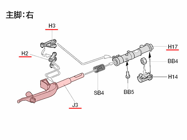 不具合品を使用すると、主脚右の場合、J3とH17部品の角度がズレてしまうため、H2・H3部品の組み付けができません。