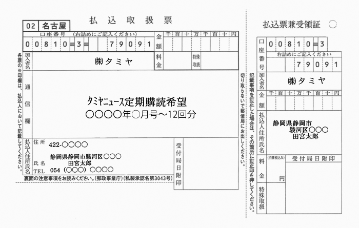 通信欄に「タミヤニュース定期購読希望」を記入。