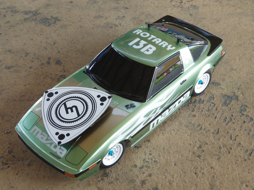 • ロータリー全開のRX-7(ロータリーマークは回転します)