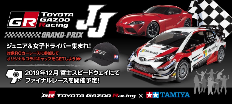 トヨタのモータースポーツ活動を手掛けるTGR(TOYOTA GAZOO Racing)がジュニア、女性RCドライバーを応援!対象となるRCイベントでジュニアと女性を対象とした 「TGR JJグランプリ」を開催。 トヨタ車ボディを使用してくれた選手全員にオリジナルコラボキャップをプレゼントします。ヤリスWRCや今後発売予定のGRスープラなどのTOYOTAボディでレースに参戦して、プレミアムなアイテムをGETしよう!