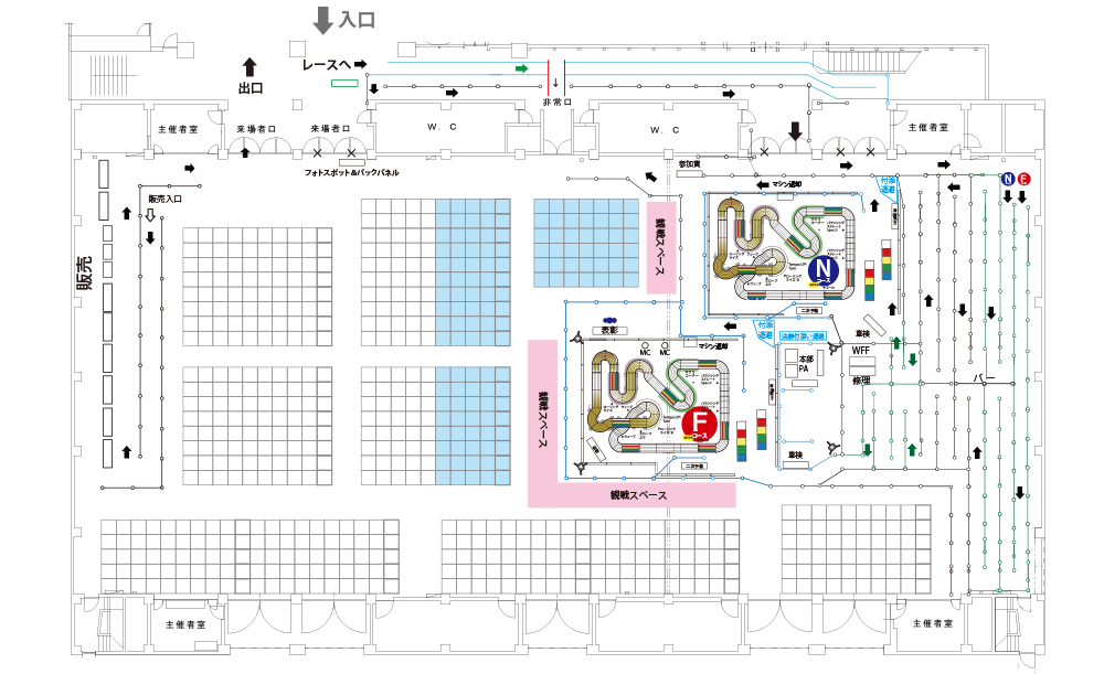 ・走行後は一旦コースから退出いただき、再度走行希望の方は待機列にお並びください。