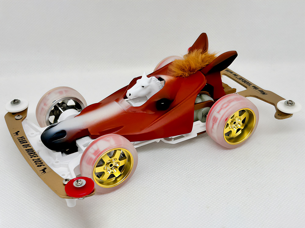 『2026年 干支ミニ四駆「午年」』キットを使用した作品がバラエティ豊かに集まりました。同じキットをベースにしながらも、アイデアと工夫次第で表情がガラッと変わります。新春にふさわしい一台一台をじっくりご覧ください!