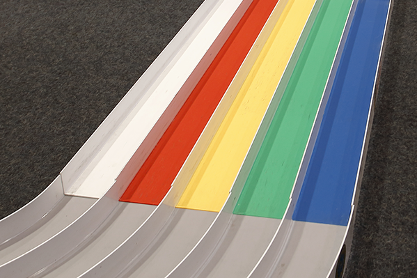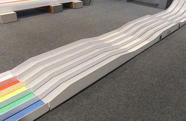 ジャパンカップ2017に登場した「クライムチェンジャー」がバージョンアップ! 1〜4レーンはいきなり60°の壁に突入!その後20°、30°バンクが連続するため、ブレーキセッティングが重要。 -