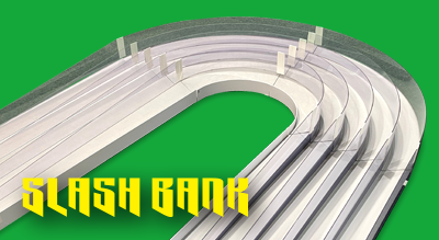 謎のベールに包まれていた新セクション「スラッシュバンク」がついに公開。直前のストレートセクションから路面の外側が高くなり始め、最終的に角度が30度に達するバンクだ。マシンがハイスピードで突入すれば“壁走り”状態となるのに加えて、内側と外側のバンクのアール(曲率)が異なるので、ブレーキが低かったり、全長が長い場合は急減速しやすくなる点に要注意。 -