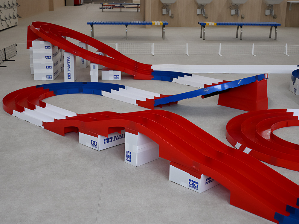 プール休業期間中の施設を利用して、屋内スペースに大小二つのコースを設置。2026年5月3日までの期間限定で毎週土日に営業します。しかもコースレイアウトはタミヤ監修による本格的なもの!多くの人が訪れたプレオープンの様子をご覧ください。