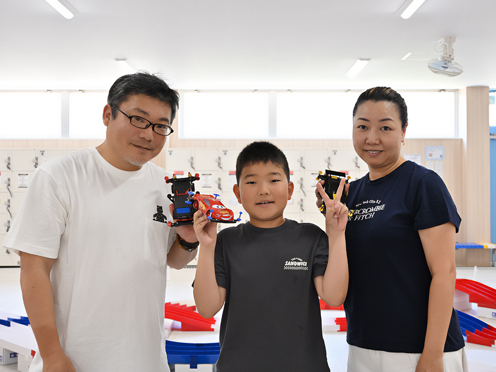 「家電量販店のコースで走っているミニ四駆を見た子どもがやりたがって、2カ月前から親子で楽しんでいます。プールのSNSを見たらちょうどミニ四駆コースができると聞いて、近所なので遊びに来ました。」