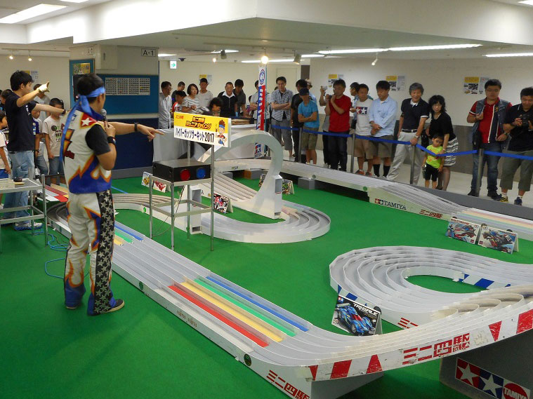 会場内の特設サーキットでは人気のミニ四駆競技会を毎日開催します。(土・日曜日を除く)