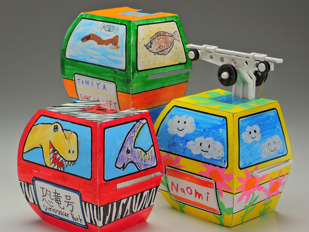 そこで『月替わりタミヤ特別展』の最終回となる3月期の展示では、『ゴンドラぬりえコンテスト』の第1回から第4回までにご応募いただいた全ての作品を4月4日(日)まで、「静岡科学館る・く・る」8階にて一挙に展示いたします。正面、上面、左右面、それぞれに趣向を凝らした作品たちをぜひご覧ください。