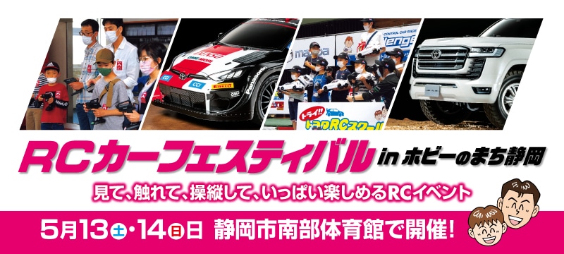 RCカーに触れて、操縦して、いっぱい楽しめるイベント「RCカーフェスティバル in ホビーのまち静岡」をツインメッセ静岡のすぐとなり、「静岡市南部体育館」にて同時開催!電動RCカーの体験走行会「トライ!!トヨタRC」や電動RCカーの工作教室「トライ!!トヨタRCスクール」、電動RCカー競技会「トヨタチャレンジカップ」などRCホビーをおもいっきり楽しめるイベントです。さらにミニ四駆工作教室も同時開催。またレースで活躍してる「GRsupra」や「GRヤリス」の実車に加え、出展メーカーによるブース展示も行われますのでクルマ好きには見逃せない内容が盛りだくさん!