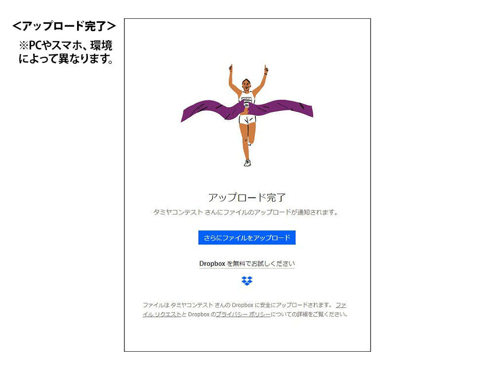 システムの変更に伴い、アップロード完了後に応募者へのメール配信が行われません。申込画面で「アップロード完了」と表記されます。