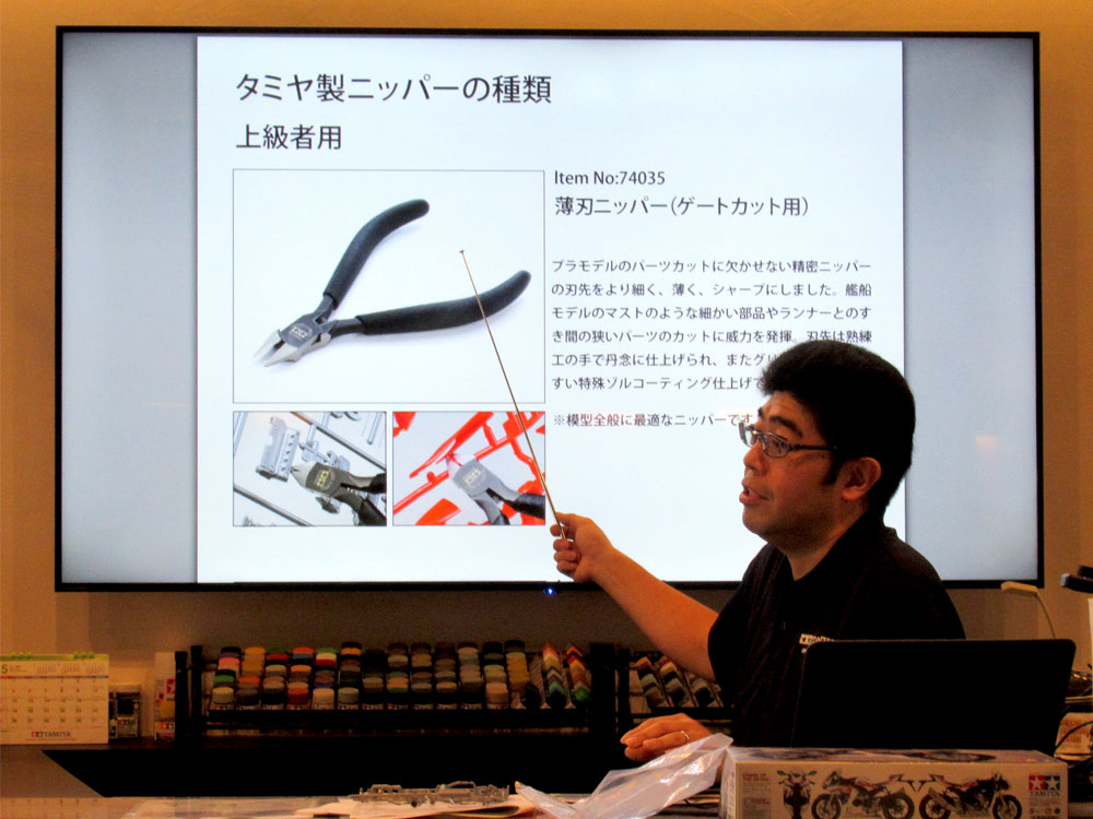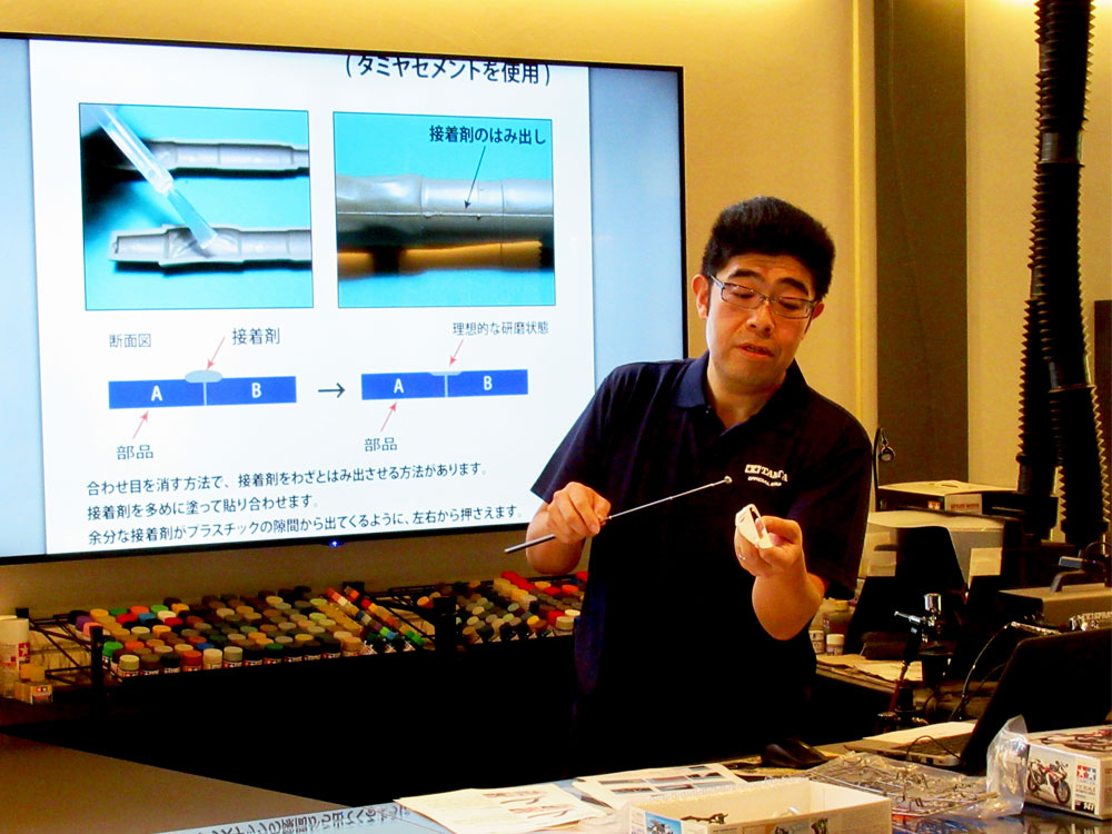 1/350 艦船シリーズの「1/350 日本駆逐艦 雪風」を題材に、キットの組み立てはもちろん、エアーブラシを使った本格的な製作スキルを学べる専門講座です。スケールモデルやRC、ミニ四駆などの完成品を製作する専門部署に所属するタミヤスタッフが講師を務め、工具や接着剤の基本的な使い方はもちろん、エアーブラシを使った塗装方法や、ワンランク上の仕上がりに欠かせない塗装のコツや汚しのテクニックをたっぷりレクチャーします。