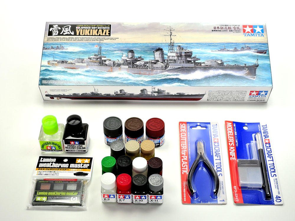ITEM 78020 「1/350 日本駆逐艦 雪風」のキット本体、各種塗料、仕上げ用資材分も含む。