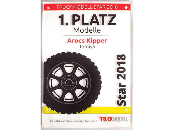 【速報】ドイツで様々なジャンルの模型専門誌を出版するVTH社が選出する、2018年のTruck Models部門最優秀製品 “Truckmodell-Star Award 2018” を、タミヤの「1/14RC メルセデス・ベンツ アロクス 3348 6x4 ダンプトラック」が受賞しました。