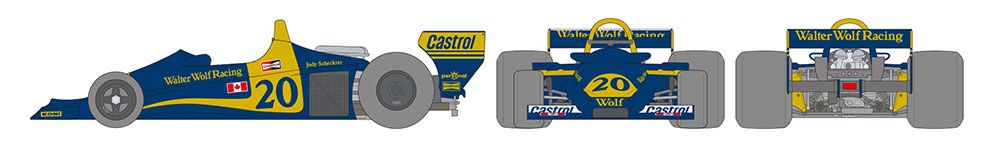 1/20 SCALE WOLF WR-1 FORD1977年のF1グランプリ開幕戦、アルゼンチンGPでデビューウィンを飾り、この年ランキング2位と大活躍したウルフWR-1フォードのプラスチックモデル組み立てキットです。サイドポンツーン全体でダウンフォースを発揮すべく考案されたクサビ型フォルムを実車そのままにモデル化。フォード・コスワースDFVエンジン、トランスミッション、サスペンションなども精密に再現され作りごたえ十分です。シンプルなコクピットには各ペダルもパーツ化し、臨場感を高めるドライバー人形も付いています。ゴールド部分やカナダ国旗などの車体のマーキング、そしてドライバーのヘルメット用マーキングはイタリア・カルトグラフ社製スライドマーク。グッドイヤーのレーシングスリックタイヤは質感あるソリッドゴム製です。