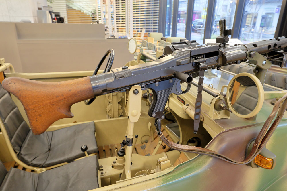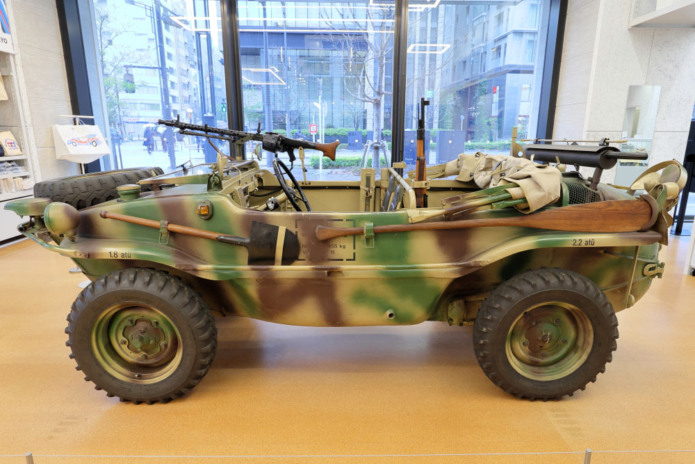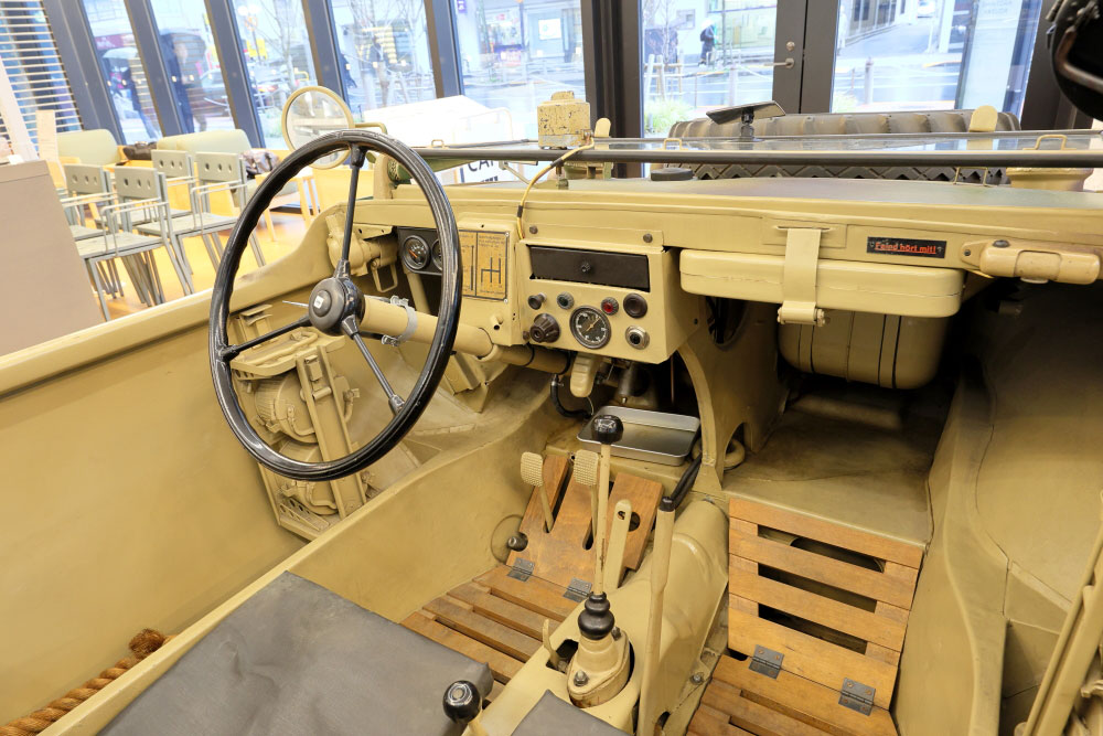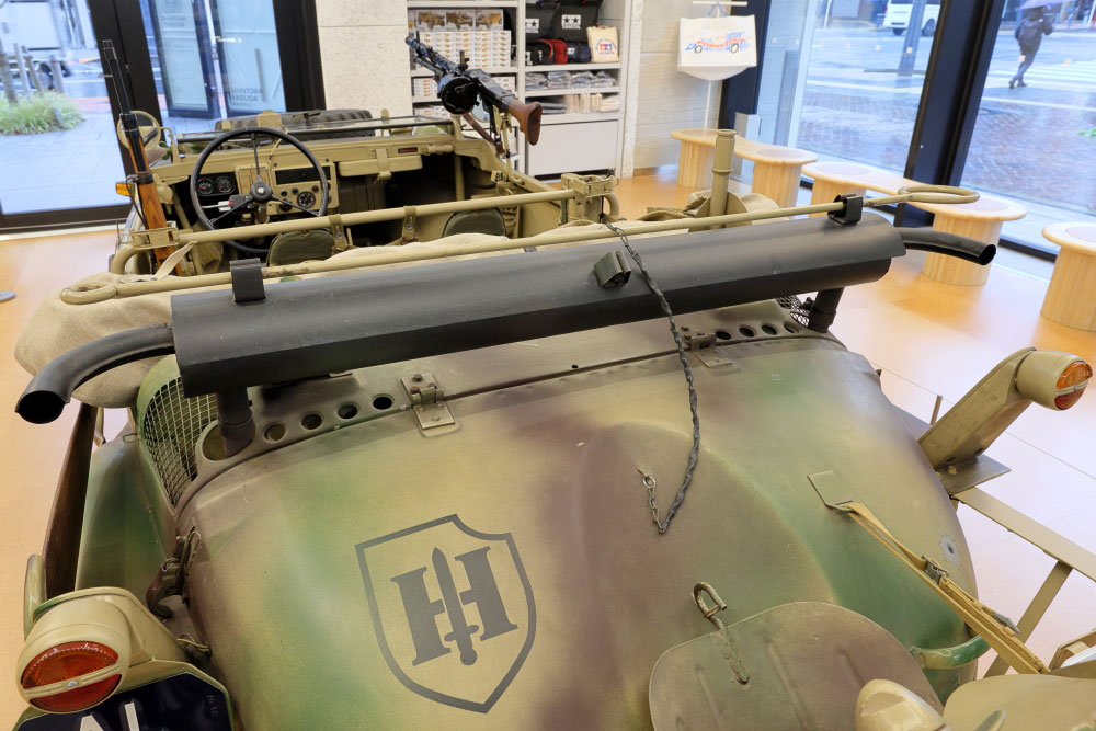 ※The vehicle on display is a road legal version with turn signals and lights added, and differs from how it appeared in WWII.
