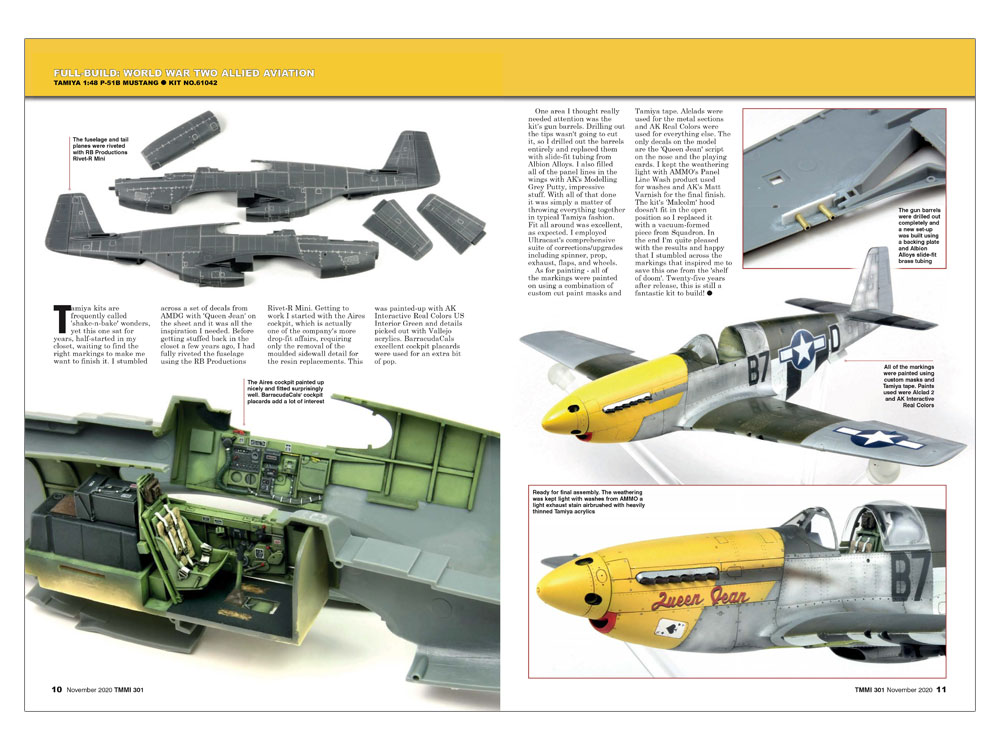 ノースアメリカンP-51Bマスタング(1/48)、Honda モンキー125(1/12)、ドイツ対戦車自走砲 マーダーI(1/35)パート1、ランチア ベータ モンテカルロ(1/12)、ソビエト海軍航空母艦バクー(1/700)の製作記事の日本語訳付き。この他、F2A-2 バッファロー アメリカ海軍(1/72)の製作記事なども掲載しました。