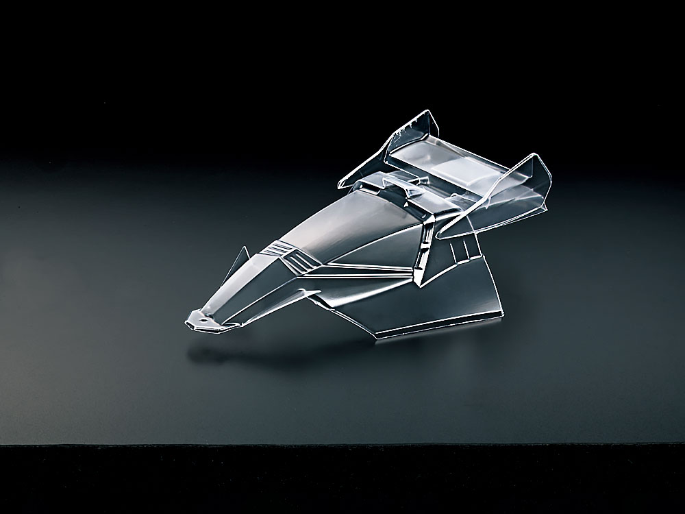 【 基本スペック 】 ●完成時の全長158mm、全幅98mm、全高47mm ●モーターつき ●組み立ては接着剤不要のはめ込み式 ●ボディはクリヤーのポリカーボネート製 ●スーパーハード小径ローハイトオフセットトレッドタイヤを装着 ●ギヤ比は3.5:1