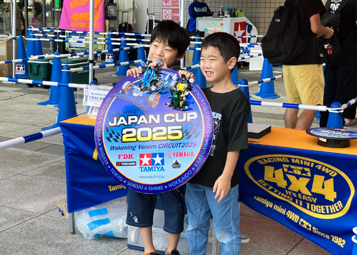 今シリーズ2回目となるジャパンカップ2025東京大会2。2日目は、トライアルクラス、ジュニアクラス、ファミリークラス、オープンクラスの合計4クラスが開催!再び東京に登場した公式コース「Wakening Venom CIRCUIT 2025」にミニ四レーサーが挑戦。抜きつ抜かれつの選手の接戦に皆が注目し、大きな声援を送りました。