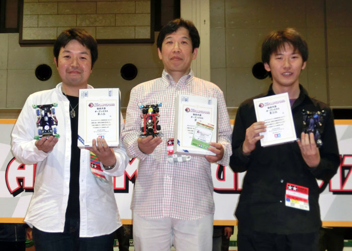 ■会場 :サンフェスタ 1Fイベントホール(仙台市若林区) オータムカップ第三戦は杜の都・仙台へ!ジャパンカップに続いて今年二度目となる仙台大会。地元宮城をはじめ東北各地から、さらには新潟や東京からも選手が集まり、熱い戦いが繰り広げられました!オープンクラスでは大阪大会に続いてARシャーシが見事優勝!!ジュニアクラスは兄弟二人によるワンツーフィニッシュ!では会場の様子をさっそくごらんください! |