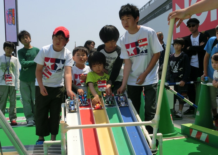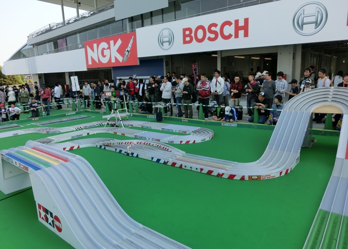 ■会場 : 鈴鹿サーキット(三重県鈴鹿市) ミニ四駆スプリンググランプリ最終戦はレースの聖地、鈴鹿サーキットで行われました!コースが設置されるのは実際のレースでピットとして使われるエリア。いつもより少し特別な雰囲気ですね!来月から始まるジャパンカップ前の最後の大きな大会とあって、この日も多数の選手が参加!夏に向けての手ごたえはつかめましたか!? |