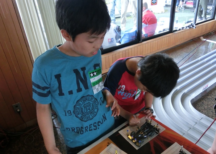 ■会場 : タミヤ本社(静岡市駿河区) 静岡ホビーショーと同時開催の「タミヤオープンハウス2013」内にて、ミニ四駆ジュニアカップが行われました!タミヤ本社内といういつもと違う雰囲気のなかで行われた大会でしたが、レースはいつもどおりの熱い戦いが繰り広げられました!132名の参加選手のなかから、優勝の栄冠に輝いたのはいったい誰だ!? |