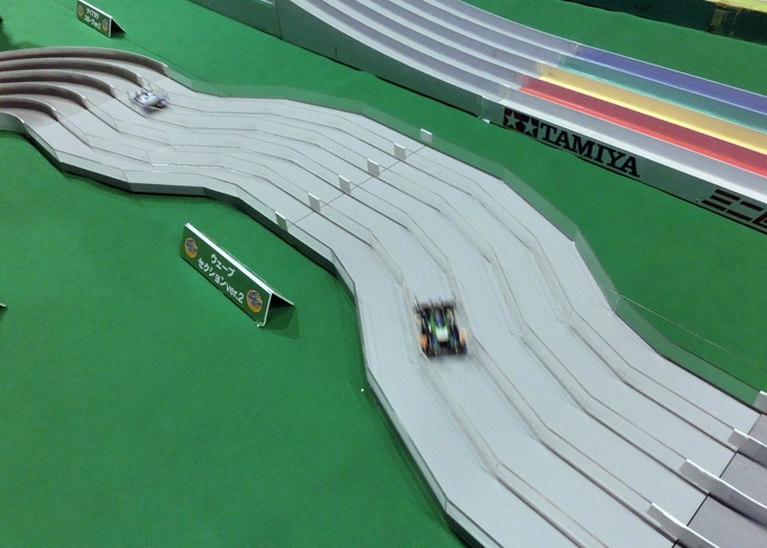 cimg6452大阪大会もコースは2セット設置。こちらのコースの司会はMCの櫻井さんと熊谷さんのおなじみのコンビ。 cimg6456スタート直後の逆バンク。油断するとコースアウトするぞ! cimg6457レーンチェンジの後にウォッシュボードストレート。ここでバランスを崩さないように。
