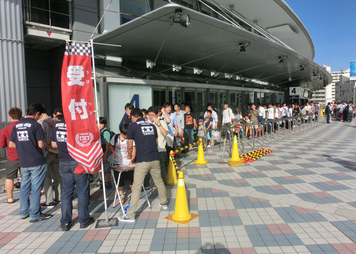 e3以前の自分を超えろ!「スーパークライムサーキット2013」、大阪に再登場! 01朝から長蛇の列!入場をスムーズにするため、場外受付を行いました。 02会場はスカイホール。司会はおなじみ、櫻井さんと熊谷さんです。