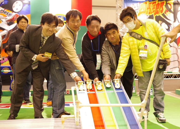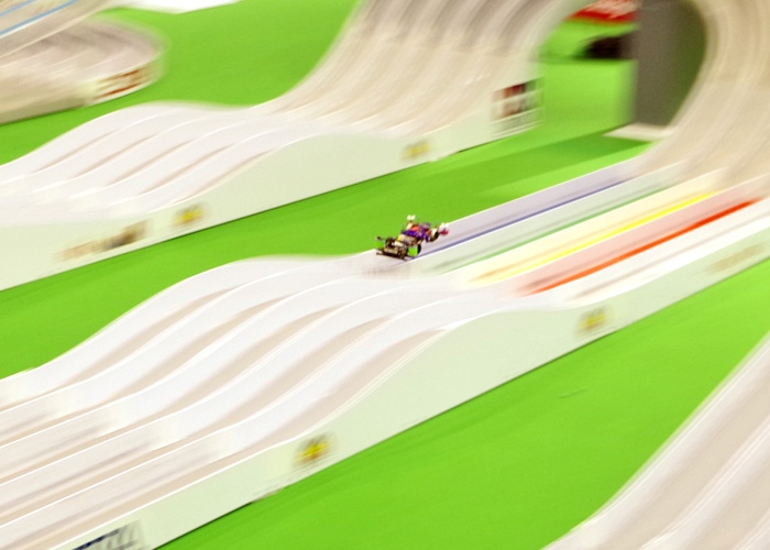 画像「ファン感謝祭」としてフリー走行も開催。あの「ナイアガラスロープVer.2」も登場! 画像公式5レーンサーキットでの走行をたっぷりお楽しみいただきました。 画像同じマシンをそろえてワンメイクレースを楽しんでいます。