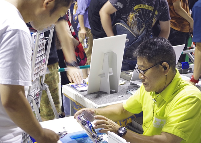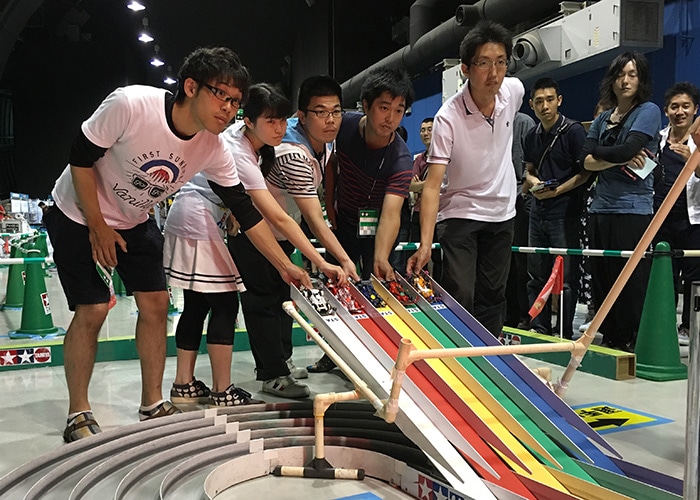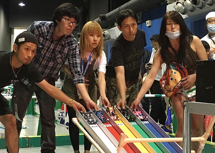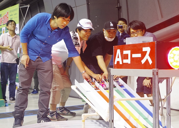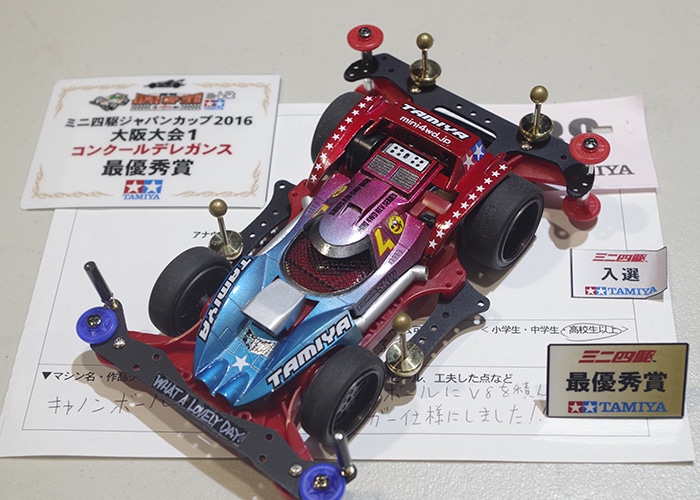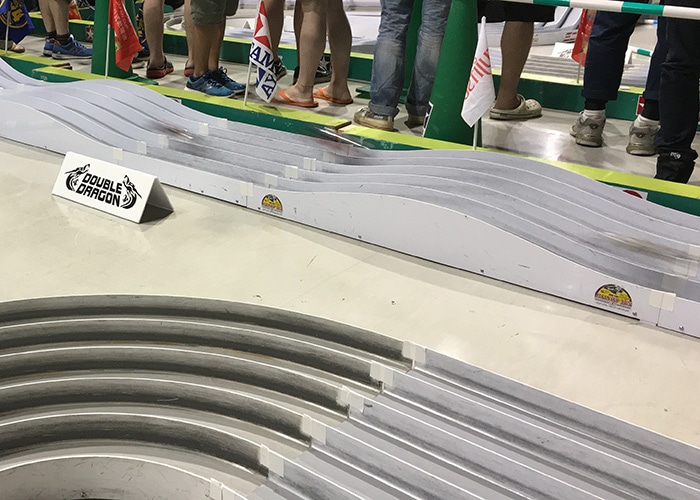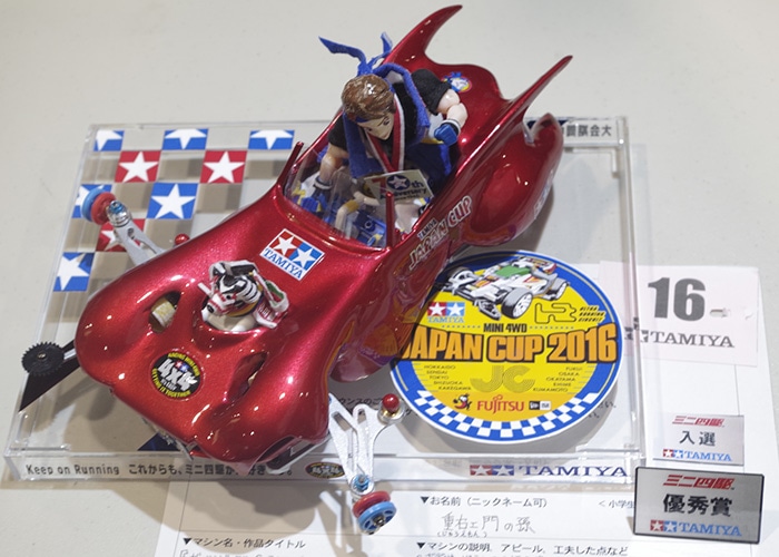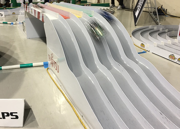 | ■会場:京セラドーム大阪・9階スカイホール(大阪市西区) 今年もミニ四駆日本一を決定する『富士通 乾電池 提供 ミニ四駆ジャパンカップ2016』が全国各地で開催! 第4ラウンドは京セラドーム大阪・スカイホールでの大阪大会。参加者は合計2,209名でした。 戦いの舞台となる公式サーキットは『ウルトラバーニングサーキット 2016』。そろそろ攻略法も見えてきたのか、かなりのハイスピードで完走するマシンも見受けられるようになってきました。まだ手がかりがつかめない…という方は、「ミニ四駆超速ガイド」やYouTubeの特番、イベントレポートの入賞マシン画像などを参考にしてみてはいかがでしょうか。 |