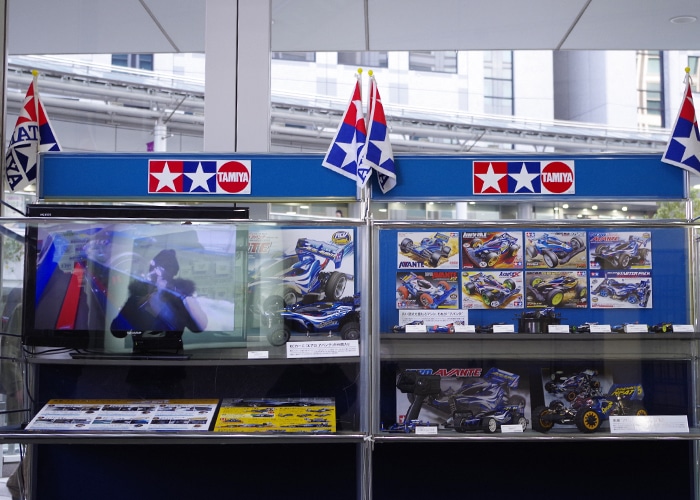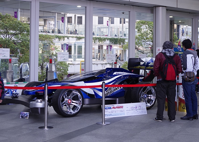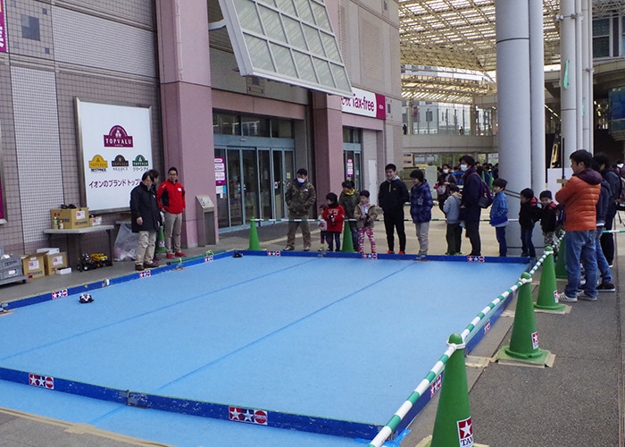 画像今回特別企画として『1/1 ミニ四駆 エアロアバンテ』を展示しました。 画像エアロアバンテの隣には関連展示コーナーも用意。 画像イオン入口前では『RCカー体験操縦会』を開催いたしました。