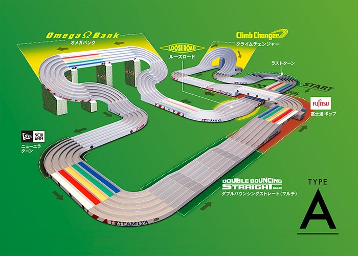 「クロスシステム」を取り入れ、走行特性が全く異なる4パターンのレイアウトが可能なサーキットです。新潟大会は「タイプA」が登場!