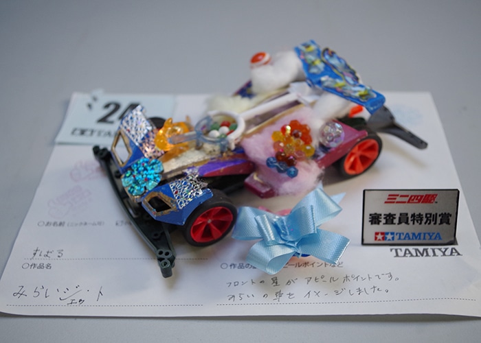 レース直前に行われる車検の様子。ミニ四駆公認競技会規則(2019年特別ルール)に沿って、マシンに違反箇所がないかチェックします!
