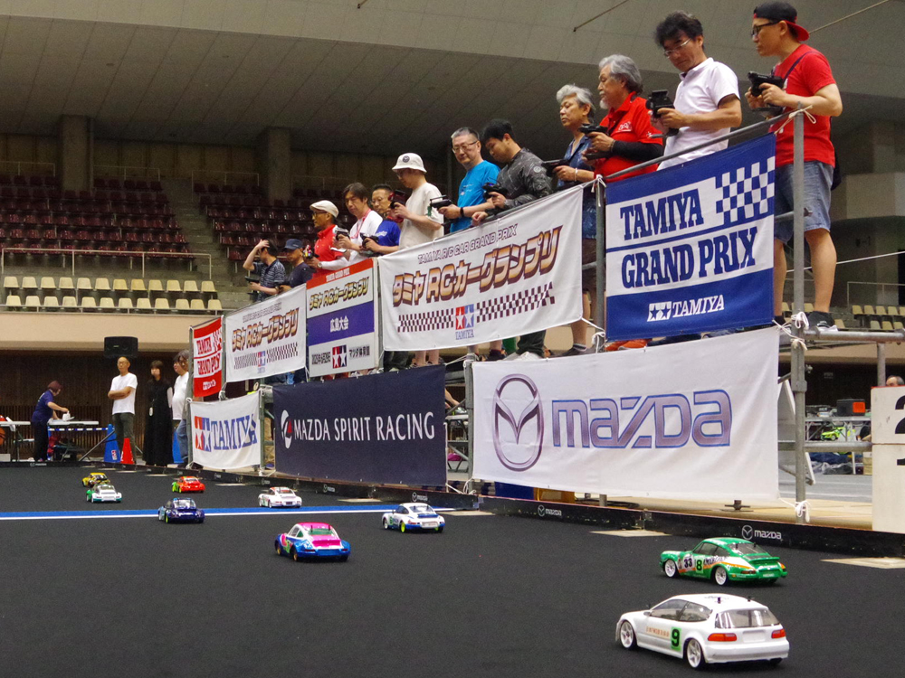 広島県広島市 マツダ体育館 特設サーキットで「タミヤRCカーグランプリ 広島大会」を開催しました。人気のツーリングカー部門は【MAZDA JJグランプリ】と初心者から中級者向けの【タミヤツーリング】の2クラス。それに新クラス【NX-GEN】やレース経験が少ない方を対象とした【タミグラ☆フレッシュ】など合計8クラスでレースをおこないました。